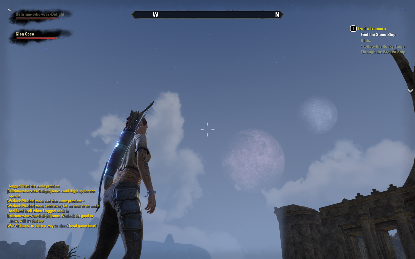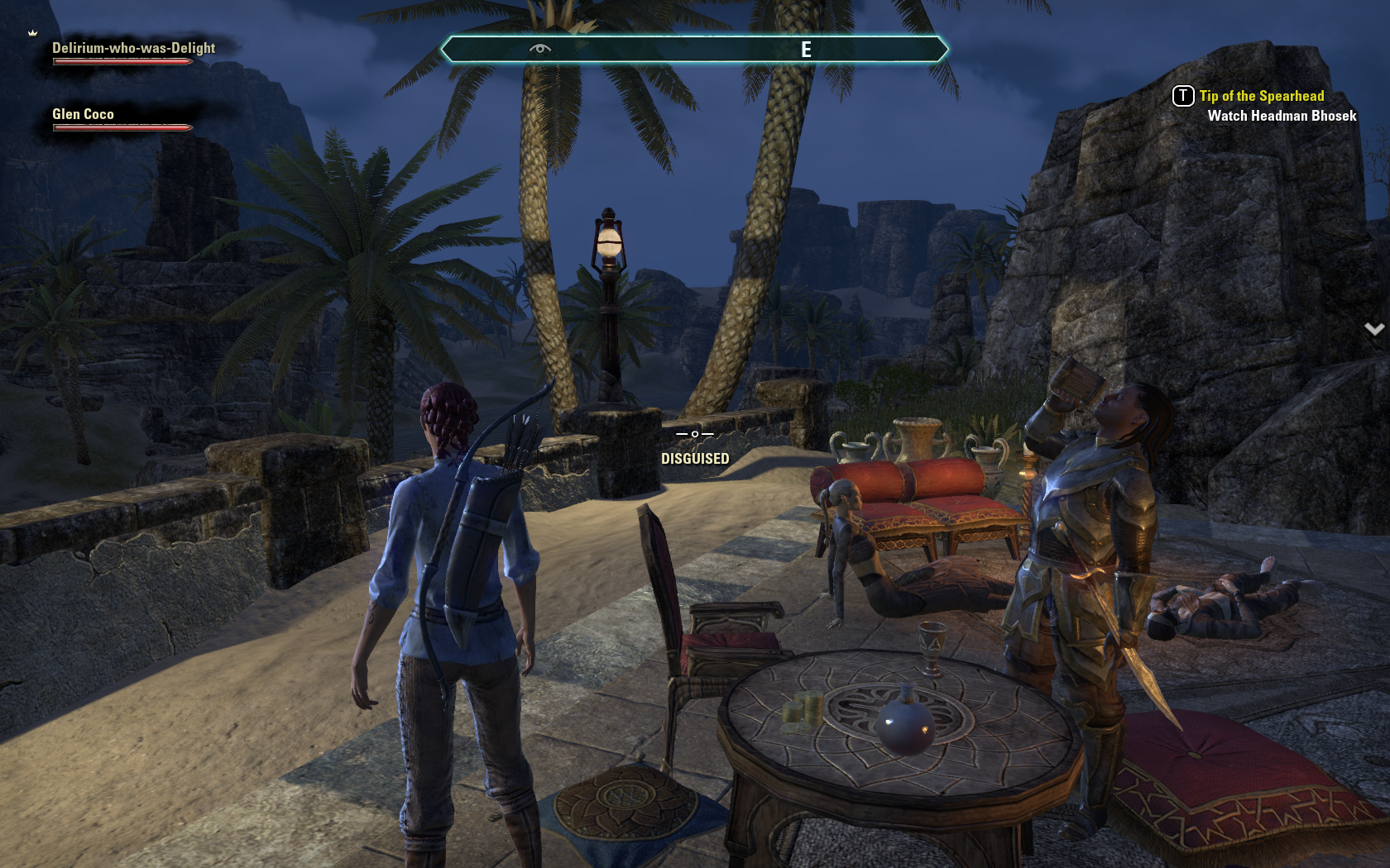 So here we are in Stros M’kai again, my cute-as-a-button Orcish Nightblade Dleirium-who-was-Delight, and Glen Coco the Breton Sorcerer and archer.