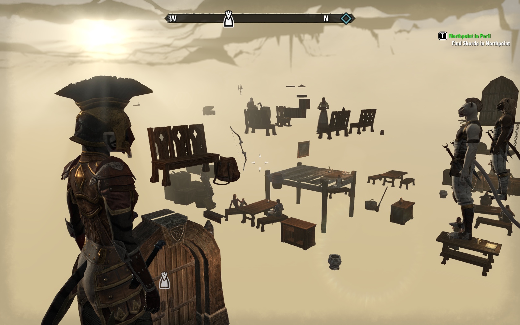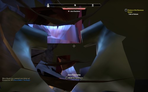 So normally the “Go out the door and inside someone's head” glitch is a little on the macabre side, with teeth and the backs of eyeballs and such. But here the mashup of heads (I think there were at least 3 of us occupying the same space) made for some beautiful abstract art.
