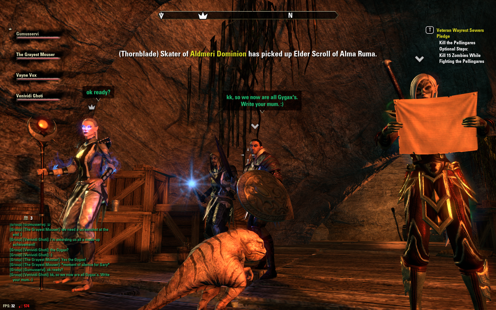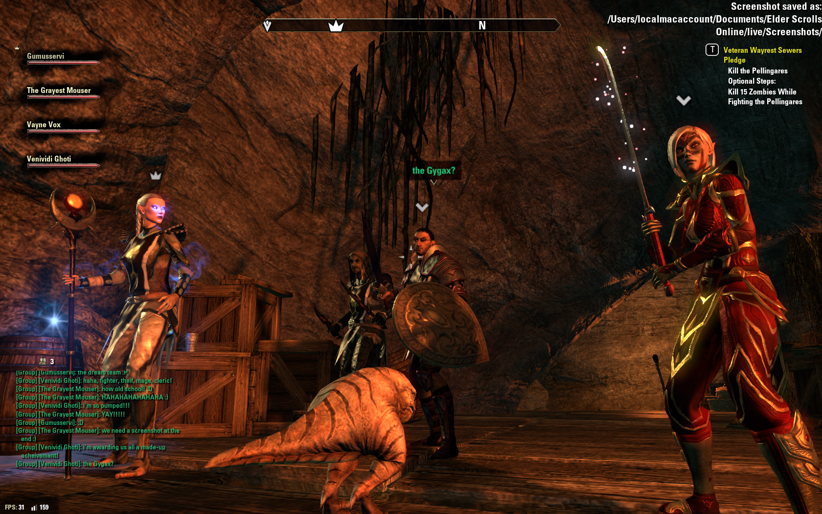 The rest of the dungeon went well; granted, vet Wayrest Sewers is probably the easiest veteran group dungeon in the game, but we were pretty proud of the fact that we were able to bring it and crush it, since our Healer and the other DPS were doing those roles for the first time with those toons.