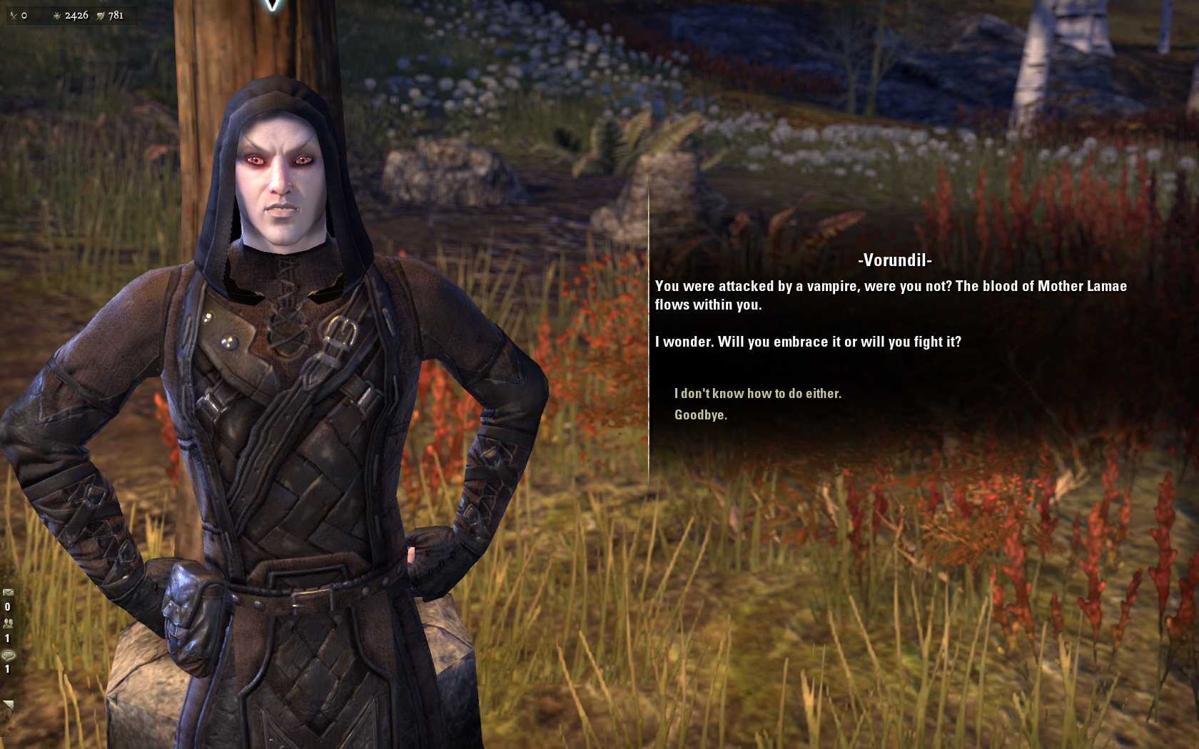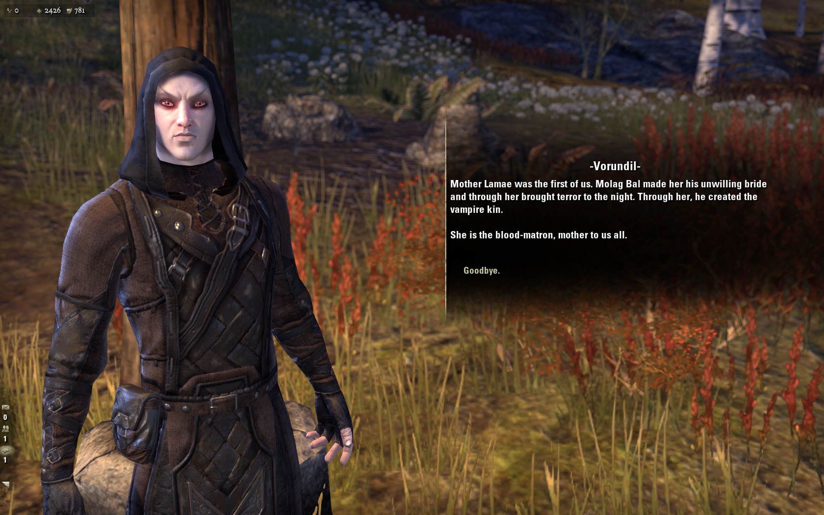 It was good to get this backstory; I like how vampirism is handled in the Elder Scrolls lore, that there is no one definition of a vampire and their powers, or of their origins story; rather there are a set of variations on a theme of the kinds of powers they have, and an agreement that they are ultimately the creations of Molag Bal, though in different generations, variations and mutations.